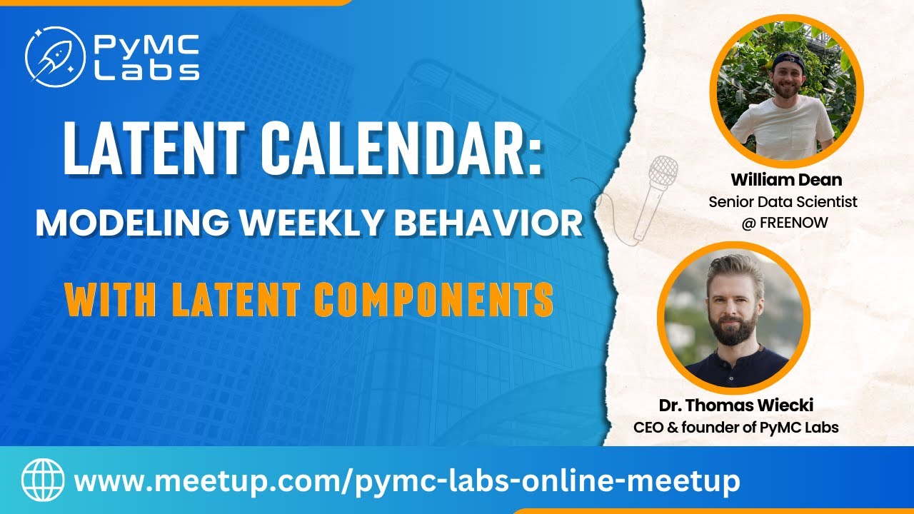 In this event, Will Dean and Thomas Wiecki, will demystify the art of understanding weekly calendars. They’ll be using Latent Dirichlet Allocation to simplify your weekly plans. For a sneak peek, check out the “latent-calendar” on PyPI or see an example here: Bikes in Chicago - Latent Calendar